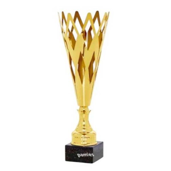 Trofeo en abs dorado. Realizada en mármol. Placa de aluminio con grabación láser incluida. La altura dependerá de la base. Disponible en 3 tamaños