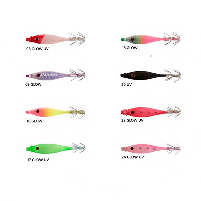 Visibilidad mejorada: Disponible en fosforescente, reactiva a los rayos UV y versiones combinadas, lo que hace que sean excepcionalmente fáciles de detectar para los calamares y las sepias.