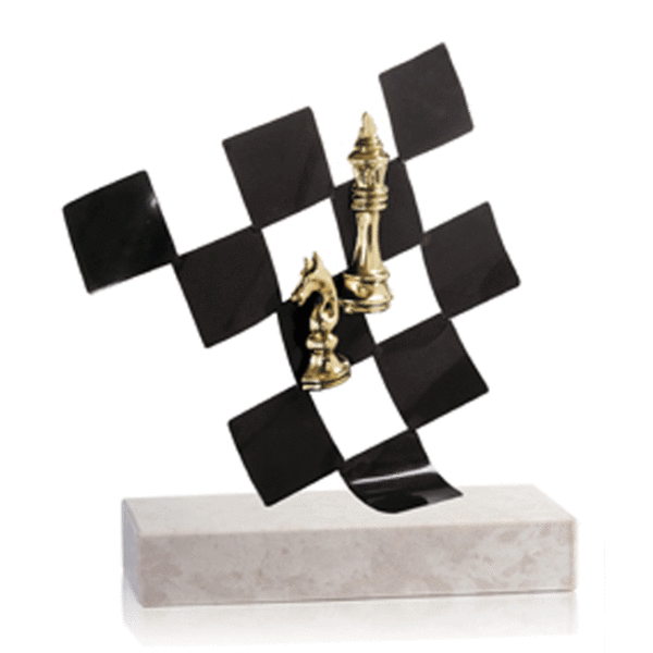 Trofeo ajedrez fabricado en metal y peana de mármol. Placa de aluminio con grabación incluida. Disponible en 3 tamaños