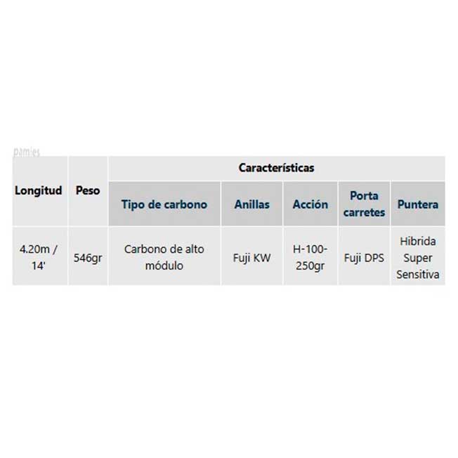Acción Heavy con un peso ideal para el lance entre 90 y 130 gramos de plomada.