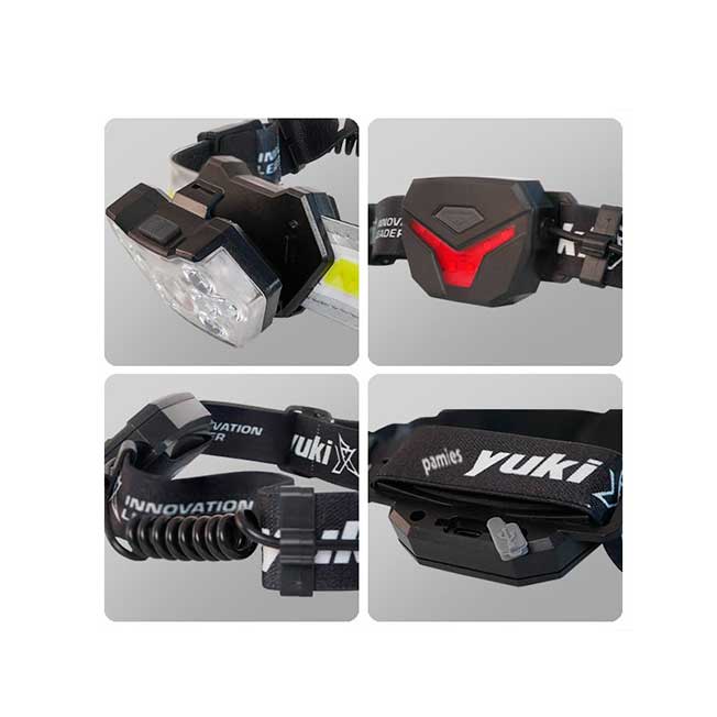 Esta linterna frontal cuenta con una potente combinación de luces:
