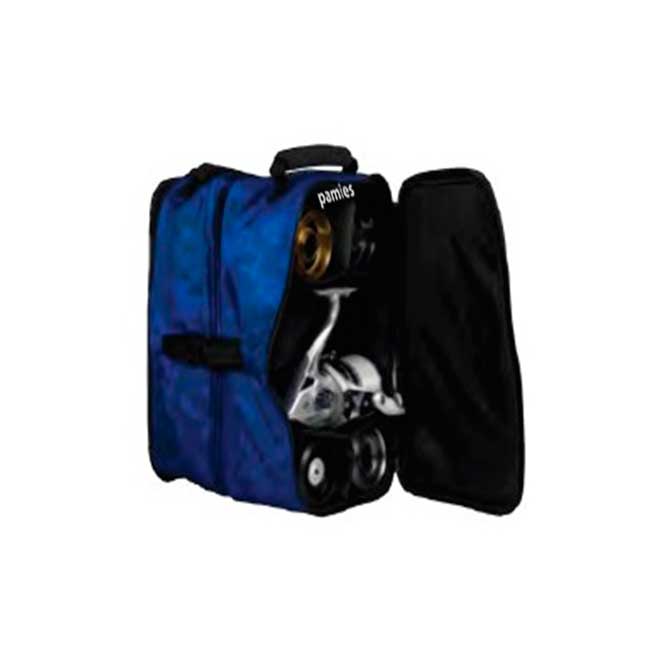 Fabricada en poliéster 6X300D, ofrece cuatro compartimentos ajustables para almacenar hasta 8 bobinas o accesorios varios y un espacio central para el carrete. Se pueden conectar varias fundas entre sí con el sistema de fijación.